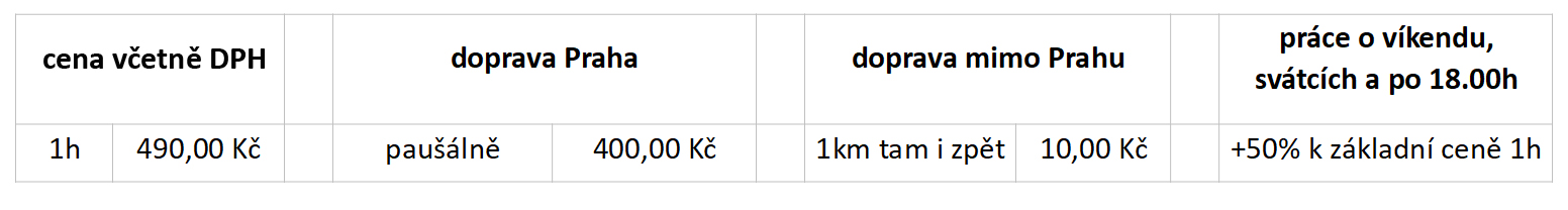 zahrnuje celkovou cenu za odpracovaný čas, včetně případného zaměření či konzultace, nákup i cenu materiálu,